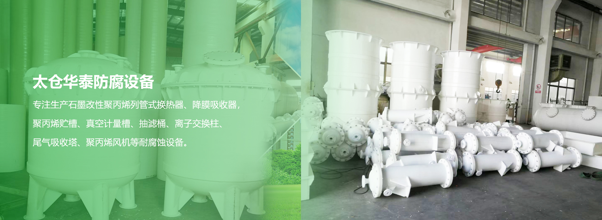 太倉(cāng)華泰防腐設(shè)備有限公司是專業(yè)生產(chǎn)石墨改性聚丙烯列管式換熱器、降膜吸收器,聚丙烯貯槽、真空計(jì)量槽、抽濾桶、離子交換柱、尾氣吸收塔、聚丙烯風(fēng)機(jī)等耐腐蝕設(shè)備。華泰的產(chǎn)品在國(guó)內(nèi)化工、制藥、染料、冶金、食品、石油化纖等許多行業(yè)中得到應(yīng)用。
